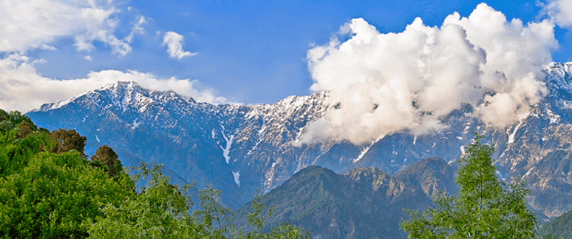 Snow-capped, clouds and trees- a view too good to be true at Naddi View Point